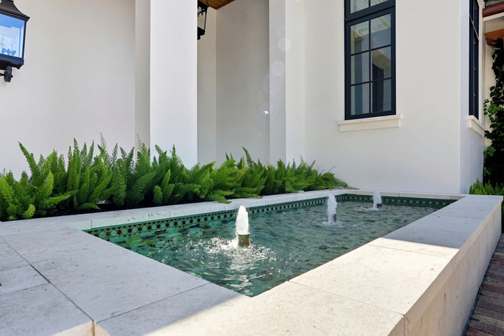 This custom pool was designed to anchor the home’s waterfront setting while maintaining a strong architectural presence. The clean, linear layout complements the structure of the residence, while the dark interior finish adds depth and contrast to the surrounding landscape. Positioned to take advantage of canal views, the pool integrates seamlessly with adjacent decking and lawn areas. Subtle detailing and thoughtful placement create a private, composed setting that feels both refined and relaxed within its coastal environment.